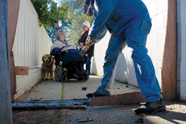 It piqued the neighbors' ire no end to discover that their beloved alleyway—a handy cut-through to Mission Plaza—had suddenly been closed by a landlord they didn't know. One of them, Judy Ziggler, speculated that Mahony's real motive in boarding off the ends of the alleyway was to demolish the wall and expand his yard. She said keeping the alley open was necessary to keep foot traffic flowing through the area, and she pointed out that the path is used by parents who drop off their children who attend the Catholic school across the street.