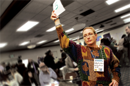 Now manifesting: a new media framework : Independent Media Strategy conventioneer Katy Kurtzman raises a hand for change.