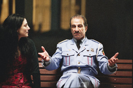 ACROSS THE DIVIDE: Dina (Ronit Elkabetz) finds a connection with Egyptian band leader Tewfiq (Sasson Gabai) in 'The Band's Visit.'