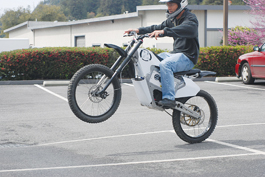 The off-road motorcycle, made especially for the loud, dirty sport of motocross, jets silently across the pavement of this Scotts Valley business park, leaving not even a wisp of smoke in its wake--which makes sense, considering this motorcycle isn't burning anything. It runs completely on electricity and is one of the first motorbikes of its kind to be mass-marketed by an industry professional.