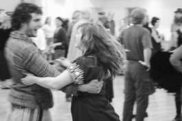 Compared to other types of dancing, contra involves none of the usual discrimination that comes with choosing partners. Sure, there are partners at the beginning of the dance, but partners switch over and over again as they travel up and down lines, swapping over a set. Everyone dances with everyone else. The entire hall dances.