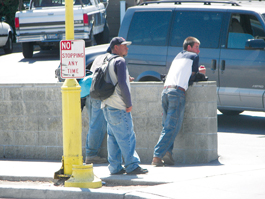 Marking Time: Day laborers wait for work near Lumbermen's on River Street in Santa Cruz.