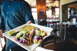 Heaven for $7: The fish tacos at Davenport Roadhouse are as tasty as they are colorful.