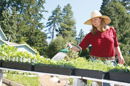 Lady Farmer: One-half of the 'biodynamic duo' of Cynthia Sandberg and David Kinch waters seedlings at Love Apple Farm.