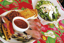 White Plate Special: The Farm's rustic tri-tip dinner is prepared with sophisticated touches like garlic-stuffed artichoke.