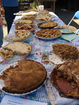 The Pie tasters Pie is always good, but right now, with the weather cooling down, the welcome warmth of an oven makes pie-baking especially appealing. On Oct. 6, UCSC's Center for Agroecology & Sustainable Food Systems hosted its annual Harvest Festival on campus. Little kids skipped among the pumpkins and scarecrows while the grownups took in a bluegrass band, cooking demos, tours and, of course, the apple pie contest. Becoming a judge "involves a bit of nepotism and a bit of luck," according to second-year farm apprentice Deborah Greig, and what a gig. The winner was Tina Michalik with her deep-dish apple tart with crumble nut topping. Second place was a classic rendition made by Stephanie Rosenbaum using lard from Severino's Community Butcher. Third place went to a visually stunning lattice top pie with an almond meal crust and bright pink delight apples. Sounds pretty good to me.