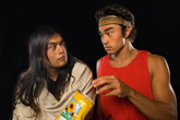 Friends in Need: Pascal (Felipe Barajas, left) and Anon (Eddie Hoffman) bond over junk food in 'Anon(ymous),' opening this week.