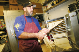 Stringing Us Along: Mike Ruymen, a.k.a. Pasta Mike, noodles around with a batch of fettucine.