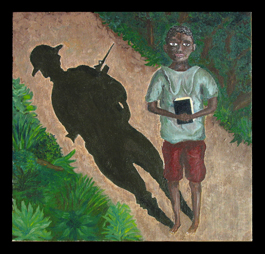 In Rwanda kids walk down the street with a knife and gun
