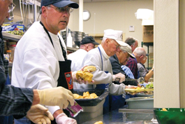 HELPING HANDS: Volunteers provide lunch for the homeless and otherwise needy at Martha's Soup Kitchen in San Jose. Last year there were more than 7,000 people living on the streets in Santa Clara County.