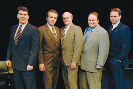 SALES PITCHERS: (From left) Michael Ray Wisely, Randall King, Stephen Klum and Colin Thomson follow their leads in 'Glengarry Glen Ross.'