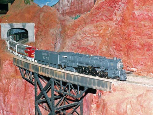 DOUBLE-HEADER: A steam engine lends a hand to a diesel on one of the HO-scale model layouts showcased at the model train show this weekend (10am–5pm) at the historic Santa Clara Caltrain Depot. The show, which also includes railroadiana and train artifacts, is sponsored by the South Bay Historical Railroad Society.