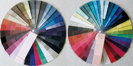 A prevailing cool breeze of colors has come ashore for spring. Soft seafoam greens appear dewy, while toned-down mossy greens represent renewal. The clouds disappear when the wheel dials in to a more cheerful green-blue. Blues this season range from deep and dignified to bold and blithe. Transcendent teal is tranquil, and tinted blue is the tip of the iceberg.