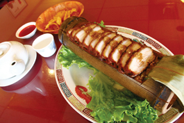 We tried the stuffed duck ($30). Meat and bones are laboriously removed from a whole duck. The meat is then cooked with sticky rice and painstakingly stuffed back into the draping skin left behind so that the bird returns to its formerly plump shape. Just before serving the duck is lightly fried to give the skin a crisp texture and mahogany color. It's an overtly rich dish that's easy to fill up on, but it's another indication of the kitchen's skill.