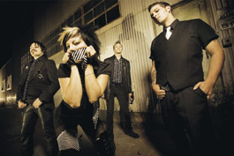 Here's the band: Traci—she's the vocalist, to say the least; Ryan crouches over and wields his guitar like a hunchback carrying a sack of gangrenous limbs through the graveyard; and Matt lays the foundation on bass. Oh, and Joey's up there on the skins, right at the epicenter of a spinning vortex projection a la Mel Brooks in High Anxiety. Rightly so, the crowd gyrates like whirling Arab dervishes ecstatically plowed on holy red wine, but with hair dye, fishnet, makeup and jet-black apparel substituting for the turbans and flowing robes.