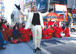 REPENT, YE SHOPPERS: Rev. Billy takes his message of anti-consumerism to the belly of the beast in Times Square.