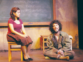 Mendoza boldly takes on the iconic Che in a wrenching performance and an often strained, hoarse voice. Under the direction of Wilma Bonet, his motivations seem fueled more by situation than character. In some cases the effect is stark realism. Occasionally, it sacrifices lines that beg for interpretation, presumably so that multiple Che myths might live (Che the righteous, Che el fuerte, Che the failed fool, Che el loco). On his knees (if you've read accounts that Che had been shot in the calf, you'll be feeling serious ouch), Mendoza offers one of his most powerful arcs—anger melting into self-mystification—when Che tells the story of stabbing his horse in despair and frustration, then crying and patting it with remorse. (Any man whose face remains on paraphernalia and plaza monuments 40 years after his death has to have contradictions.) As fiercely compelling as Mendoza can be, it is García who gives us humanity—her willful humor, forthright yet vulnerable; her determination, outbursts followed by timidity. She is able to pull our sympathies from Che's large, explosive life to her small and plodding one. García's final anguished cries lament not only Che's passing but the shrinking of the mythic world back into the quotidian one, where she has much work to do.