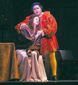 Making his company debut in the title role, Andrew Fernando gave a powerful performance, physically stooped and dragging, intensely driven and deeply suffering. The Philippines native obviously knew this role well and has scored an impression résumé with opera companies in Asia and California. His dynamic range was well and expressively displayed in solos and ensembles despite an occasional rough sound. Also worth noting were Silas Elash as the hapless Monterone who pronounces the prophetic curse, and Kathleen Moss as a lusty and vivid Maddalena. The orchestra, under David Rohrbaugh's deft hands, kept the action in motion and made sparkling work of Verdi's challenging balances and tricky syncopations.