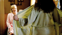 (France) An ambitious, uneven anthology by six artists, proving that France (home of Persepolis) is a haven for black-and-white 2-D animation. From low to high: designer/New Yorker cover artist Pierre di Sciullo's moving geometrical shapes are accompanied by chattering-class fears (minor social anxieties, mostly); Di Sciullo's snippets intrude relentlessly into the more visceral—if at times slightly pointless—material. An example of "pointless" is Christian "Blutch" Hincker's character, who looks and is dressed like the Marquis de Sade, prancing around siccing his mastiffs on the working class, until he gets the kind of payback any good Marxist could have predicted. Far better is Marie Caillou's tribute to Japanese animation, with a doll-like little girl in a sailor suit trying to combat a case of demonic possession. (Caillou's style is pretty much like the "Fruity Oaty Bars" commercial, as seen in Serenity.) Approaching the top is Charles Burns' tale of insect fear, as good as anything in his recent graphic novel Black Hole, although the limited animation tends to thwart the punch of the images. Richard McGuire's wordless episode about a snow-bound haunted house is perfection. Here is a vibrant, brutal contrast of black and white, of positive and negative spaces—and deceptively simple graphic storytelling. It is the most genuinely fearful of these fearful stories. (RvB)