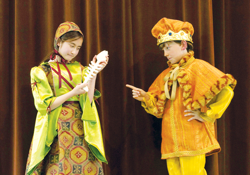 SPINE AND DANDY: Princess Alicia (Janine Rogers) clings to the titular 'Magic Fishbone,' while a worried king (Jesse Carlson) wonders how to keep up with his creditors in the Palo Alto Children's Theatre adaptation of the Dickens tale, playing Thursday-Saturday