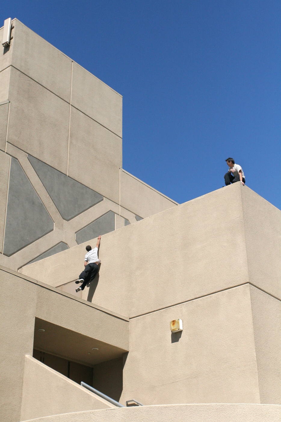 Like any superheroes, the South Bay parkour crew has to deal with its enemies. Just like J. Jonah Jameson hated Spider-Man, security guards aren't too found of parkourists. In a world where slipping in front of the public library might entitle the "victim" to an exorbitant amount of cash, the liability stakes of someone—even if willfully—climbing a wall or jumping from rooftop to rooftop Sandman style are pretty high.