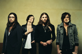 It was clear from the size of the crowd that Kings of Leon are on the cusp of major stardom, with a steadily growing and loyal fanbase. The audience members closer to the stage sang along with many of the songs, including "The Bucket" and "Taper Jean Girl," both from the band's second full-length album, Aha Shake Heartbreak. "If you guys want to sing along, feel free; we love that shit," Caleb said later in the set, as disco balls came down from the ceiling and the group started to play "On Call," the first single from Because of the Times.