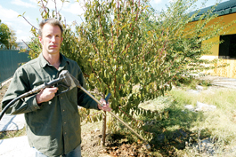 IT'S A BLAST: Yes, inventor Cameron Colson is happy to see you, but that's actually a new organic method of plant control.