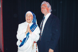 It's got to be hard to play or direct a saint without resorting to the iconic, but Hoffman adds to the famous holy woman's identifiable demeanor just a soupcon of quirky individuality. Kennedy's Malcolm is solid, though his linguistic inflection seems unsettled, like the shuffling of shoulders in a newly donned coat. Marks keeps the action and comedic timing smooth by placing scenes on the stage apron before a curtain. A quick whisking away of the curtain works magic. The presence of Mother Teresa is wisely doled out slowly so that anticipation from Act 1 prepares the way for the harder discussions in Act 2 about faith and the horrific sorrows of Calcutta. As in the Bible, the play's more universal and hard-hitting truths derive from parables. Perhaps Mother Teresa's most touching comment to Malcolm is when she tells him, "You are like Nicodemus."