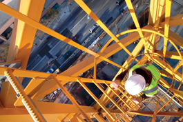 HAVING THE CLIMB OF MY LIFE: The author makes the climb up the 20-story tower crane operated by Leon Benjamin.