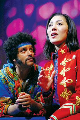 ARE YOU EXPERIENCED?: A Hendrixian Duke Orsino (Michael Gene Sullivan) and flower-child Cesario (Carie Kawa) bring Shakespeare to the 1960s in 'Twelfth Night.'