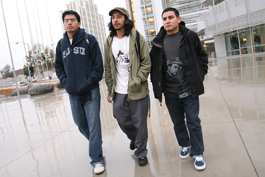 FROM GREEN CARDS TO REPORT CARDS: Francisco Alvarado, left, now has his American citizenship, but Cesar A., center, and Adrian Ramirez, right, do not. Cesar is community liaison for the group Students Advocating for Higher Education.