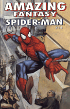 You may remember that Marvel was shamelessly marketing Spider-Man as "the Dark Arachnid" as a play on "The Dark Knight"; Kurt Busiek is returning to the frivolous roots of 1960s Marvel in Amazing Fantasy #16 (Marvel, $3.95), about the early days of Spider-Man. Busiek had earlier collaborated with painter Paul Lee in last year's Marvels, in which really surprising and even beautiful illustrative art was yoked to some very prolix story-telling. By ditching the boring humans that overran Marvels, Busiek's work is much more pleasing here--even if he is just tracing over Spider-Man's origin, shortly after the introverted Peter Parker, nipped by a radioactive spider, has been given the power to cling to walls.