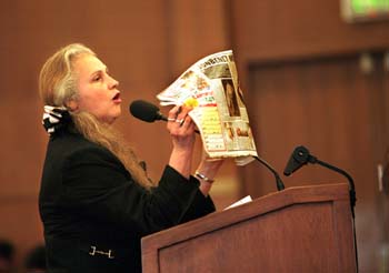Brandhorst holds up a National Enquirer she has brought with her for the council to see. By now, most council members are either suppressing laughter or talking to a colleague, not paying attention to Brandhorst.