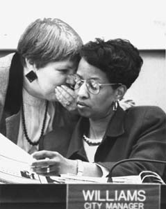 Pass It On: City Attorney Joan Gallo (left) only has good things to say about her scofflaw chief trial lawyer.