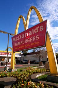 Unfortunately, the way fast food and California go together leads to excess. To save money, many cash-strapped California high schools are allowing fast-food franchises space in their cafeterias, thus giving official approval of the habit of eating high-fat, empty-calory food. The American romance with fast food isn't universal, and there are fears that what homogenized the U.S.A. will homogenize the rest of the planet.