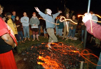 As everyone shared their reasons for being there, it became apparent that most had more on their agenda than a simple jaunt over the coals. They were seeking big changes in their lives. To overcome drug and food addictions, a mother's suicide, a lover's illness. One man said his wife suggested that he write his problems on a piece of paper and throw them into the fire for his New Year's resolution. "I thought, 'Why not throw myself into the fire?' " he said, laughing.