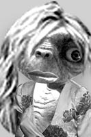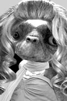It's easy to get carried away when you have no hair to start with. Taking a tip from Jennifer Lopez, E.T. goes for the high-rise do, with a tidal-wave frontal attack and spit-curl flanking maneuvers. You could stash a lot of Reese's Pieces under there. The nicely knotted scarf hides more wrinkles than a year's worth of botulism injections.