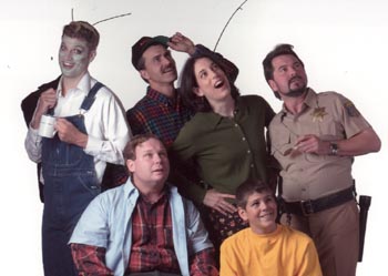 IT CAN BE HARD WORK being happy, especially since it takes some self-awareness to know what makes you happy in the first place. The residents of a small Wisconsin town are in dire need of some enlightenment on that count when a space alien visits the town and tries to show them the way in Stuart Spencer's comedy Resident Alien, presented by City Lights Theater Company. An ardent intellectual, Michael (Richard Montgomery) has always seemed a bit alien himself in his small community, so when Billy (Matt Arnold)--his son with his ex-wife, Priscilla (Rachel Martin)--disappears while on a walk with Michael, and Michael claims aliens took the boy, the general belief is that Michael kidnapped him. At the same time, there's a new arrival in town, a charismatic green-skinned man (John Kovacevich), who befriends everyone, and who is an alien AWOL from his spaceship. (It's hinted that his green skin escapes detection by most, because of a combination of dark lighting and concealing makeup.)