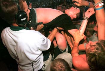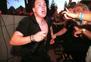 Front Row Center: A rabid Papa Roach fan screams from his vantage point in the frontlines at this show that promoters say brought out 17,000 people.