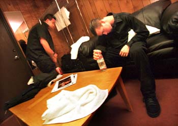 Winding Down: After the final encore, guitarist Jerry Horton and vocalist Coby Dick are spent, catching a breather backstage before heading home for the night.