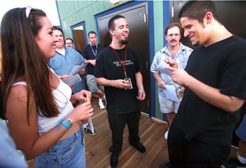 Radio Friendly: Fans gather around bassist Tobin Esperance and guitarist Jerry Horton at a meet-and-greet sponsored by KRXQ 98 Rock.