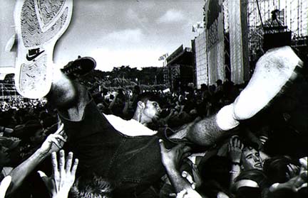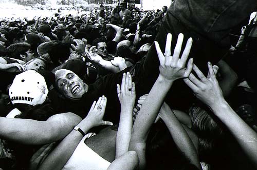 Hands Across America: Safe and sober crowd surfing. (40k)