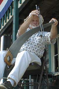 The night before the competition, participants played a sawing tribute at the Santa Cruz statue of saw-playing legend Tom Scribner, and then retired to the Roaring Camp festival grounds for a six-hour jam session on the meadow that lasted past midnight. "I guess we kept some of the other campers up," one participant conceded a little sheepishly.