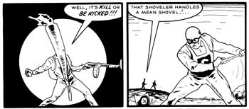 Burden's surreal poetry has made his comics beloved cult items. I hope his unique comics will garner some new readers because of The Mystery Men movie. It's apparent that the movie will be easy, silly work, made to be appreciated by irony lovers in on the joke. Thus it won't be a distillation of Burden but an extraction of him--a movie flavored with as much of Burden's unique talent as the average-Joe palate can stand.