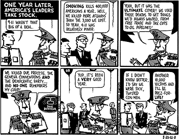 Perhaps the most underreported story of 2001-2002 was the number of Afghan civilians killed by American bombs, missiles, mines and bullets. (Estimates begin at CNN's conservative 3,500.) While the Pentagon's argument that it is difficult to track these things from satellites and high-flying planes rings true, it's hard to believe they don't have an estimate.