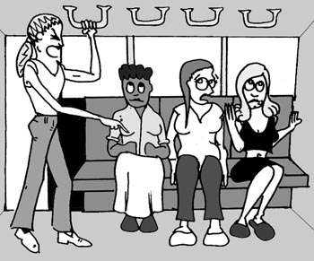 The last snotty comment that our angry adult on the bus hurls at the now-grumbling teenagers is, "You don't scare me! You're just little girls!"
