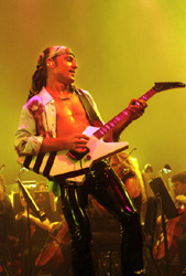 Still, while the band was in fine form, with Meine kicking vigorously around the stage, the symphony wasn't as full, brash and imposing as I'd hoped, and there were only a few songs on which I felt the orchestra really stood out. Particularly memorable were the hymn "Wind of Change," which lends itself extremely well to orchestral music, and the "Battle of the Giants" portion, which pitted the rock legends against the symphony.