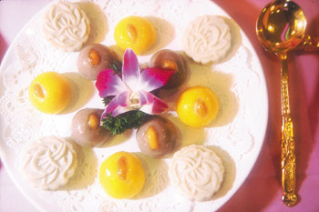 A charming and patient staff guided us through the four separate menus we found on the table. From whole suckling pig to jellyfish-sauced mullet cheeks, this is one exotic menu that nonetheless satisfies that timeless craving for the freshly braised flavors of Chinese cuisine. Armed with glasses of house chardonnay and merlot, we began with succulent barbecue pork and never looked back. "I wish I were twice as big as I am," wailed Toni, valiantly attempting to finish her enormous portion of braised scallops and roasted garlic in ginger and scallion sauce. But not even Wonder Woman after a week of fasting could have consumed all the glistening seafood laid before us by good-natured staffers--who obviously got a kick out of how much we were loving this food.