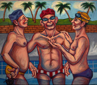 But the postmodernist soft-core by Ken Waterstreet needs to be singled out as exemplary of what might be in store for us with another Bush in the White House. Waterstreet, who perpetrates the sort of candy-apple nudes that might have illustrated homemade comix, seems not to know what metaphors to mix--and so he destroys hallowed artworks of the past in an effort to insist on something or other.