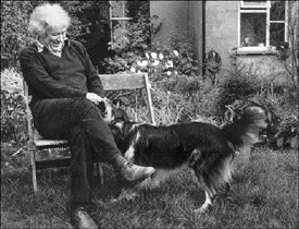 In fact, after taking some pictures in his living room, he suggested that we go to his back yard, where he offered to play with his dog; he felt the less formal environment might provide better pictures. The small enclosed backyard, the soft Irish light, and Heaney with his dog, ignoring me as they played, seemed just right for my purposes.
